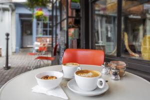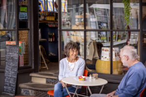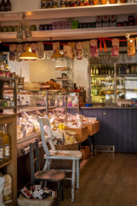 Alongside the jars, packets and bottles, we serve properly good coffee, messy hot deli sandwiches, and freshly made salads. We have a wall of cheese too. There is a little bar in the shop where you can perch and slurp, a couple of tables outside on Castle Square, and a lovely little private dining room upstairs.