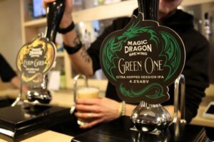 We are a cosy welcoming bar serving mainly cask and craft beer from our own brewery, Magic Dragon Brewing. We also have a number of guest ales and beers on. Magic Dragon Brewing micro-brewery is only 13 miles away at The Plassey Holiday park. We also have lagers, ciders, wines, spirits, low alcohol products and soft drinks.