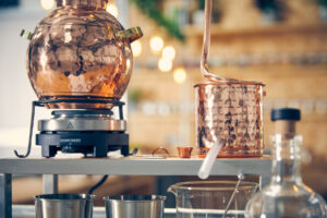 Led by husband-and-wife team Emma and Gareth Glynn, the distillery is home to traditional copper pot stills Jean and Anne. Emma, our Lead Alchemist, oversees every batch using a careful one-shot distillation method — capturing only the purest heart of each run to create exceptionally smooth spirits.
