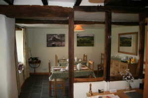 The Granary is a ground floor twin en-suite with exposed beams and stone work. There are pleasant views over the garden. The en-suite has a toilet, wash basin and a large luxury shower. Again a large room with plenty of space to sit in peace and quiet. Coffee and tea making facilities. There is direct access through a half glazed door to the garden.