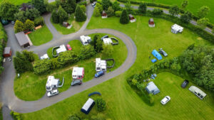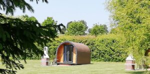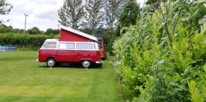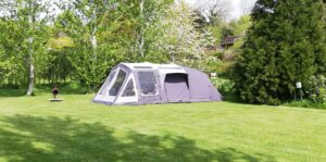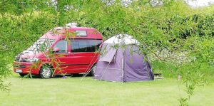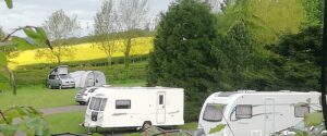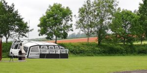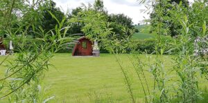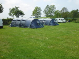 Generous size touring pitches on a gently sloping site and equipped glamping pods.