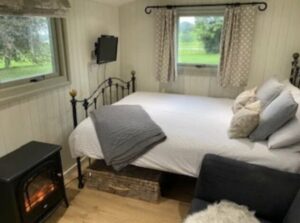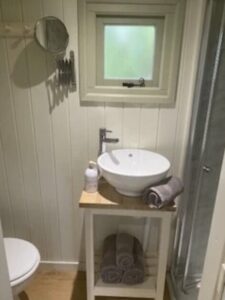 Luxury Shepherds Hut on a working sheep farm between Bridgnorth & Ironbridge. Perfectly positioned to make the most of the lovely views over fields, woodland and water, the ideal spot to relax and unwind. The shepherds hut sleeps two and has electricity, shower room with toilet, comfy double bed, small table & chairs, sofa, TV and WIFI.
