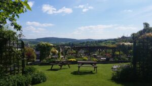 Situated in a quiet little square at the top of Bishops Castle (so no passing traffic) with fantastic panoramic views and hill top gardens. The Castle Hotel has is Dog Friendly, Walker Friendly and Cyclist Friendly.