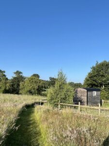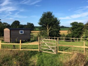Situated in the Hamlet of Pickstock, on what was a Smallholding breeding Rare Breed Pigs and Sheep .The site now comprises of 3 x Hand built Shepherds Huts made locally with locally sourced materials. Insulated with our own Rare Breed Sheep’s wool . Off grid , solar for lighting and sitting in their own gardens overlooking the Shropshire countryside.This year we are adding new facilities too our already established grounds, 3 x 6 person Bell Tents, that can be booked individually, or collectively. This will give us the opportunity for small groups, Rural Weddings, Events etc. Also an exciting edition, is our Swedish Hikki Wood fired Hot Tub. Also on site is our very own hair Salon, including a massage chair , which visitors can also indulge in. Please visit Barnet In A Barn on Facebook.The wildlife and fauna is excellent. The meadows are organic.Showers and toilets are located within a Stable block a short distance from the Huts . Constant hot water, Towels and toiletries are provided.Kitchen and Eating area is also housed within the stable. Fridge, Microwave, Kettle, Toaster, Two Burner Calor Gas Hob, All Cutlery and Crockery is provided, complimentary teas and coffee.