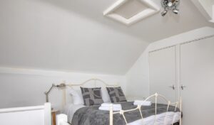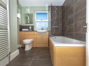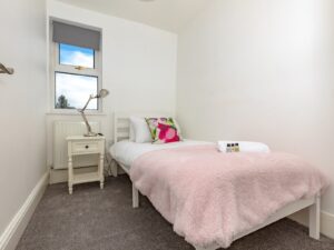 The main hub of the property is the large, airy, kitchen dining area which leads out onto the patio area, which is enclosed for your furry friends. We have a cosy, compact living area with gas fire and TV. The stairs to both the second and third floors are steep and narrow. On the second floor is a double bedroom with ample wardrobe space and a single bedroom. Stairs then lead to the third story, which is a double bedroom again, with wardrobe space and views out over the rooftops.