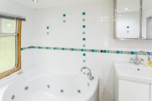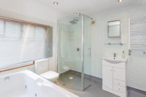 Carriage 2, two ensuite bedrooms both with whirlpool bathrooms and walk-in-showers, sleeps 4.