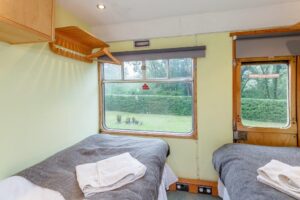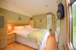 Carriage 1, one ensuite bedroom with whirlpool bathroom, two further twin cabins and a shower room, sleeps 6.