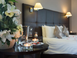 The accommodation at Hadley Park House Hotel in Telford is a luxurious experience. We have 10 rooms in the original house which are maintained to the exact same high standard as the 10 rooms within the West Wing. House Rooms are individually designed and decorated and many have original, special features. These characterful rooms boast luxury furnishings and are well-equipped to ensure absolute comfort. Our feature rooms have an extra-special something. Some house traditional four poster beds or perhaps you would prefer a room with a classic sleigh bed with double Jacuzzi bath – both are popular with couples on their wedding night and also perfect for a romantic weekend away in Shropshire with a loved one.