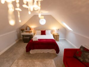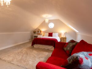 Our self-contained annexe has a spacious open plan living area, with queen size bed and sofa bed that will sleep two smaller people if needed.