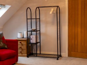 There is plenty of storage space and across the stairs is a shower room.