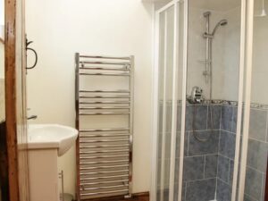 - Ground-floor shower room with walk-in shower, basin, heated towel rail and WC