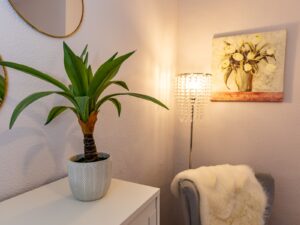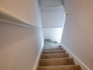 Upstairs, we have a double bedroom and bathroom with bathtub and shower. Our stairs are reasonably steep and narrow.