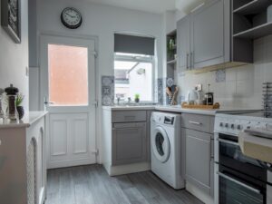 You enter the house into our cosy lounge with dining area. The kitchen has a small breakfast bar and is fully equipped with all essential cooking utensils.