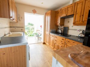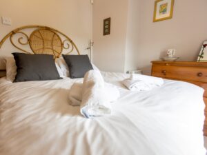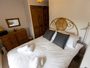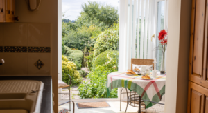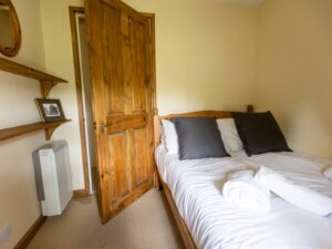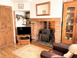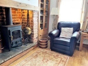 Downstairs you come into the cottage via the open-plan conservatory/kitchen. This is a great space to sit, relax and take in the views. Through to the lounge for the colder months, we have a log burner, which you are welcome to use.