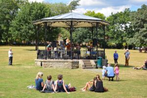 Walk on to the central green with its Victorian band stand and take the children to the play area or for a game of crazy golf. Look out for the free events which happen throughout the summer at weekends.