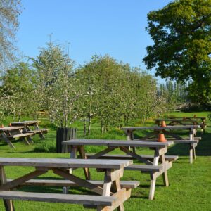 Our bar & shop are open 7 days a week for you to enjoy a drink and take away some beers, or spirits. Our bar is lovely and cosy with a wood burner for when it’s cold. A large viewing window lets you take a peek into the brewery and distillery and watch us in action on brewing days. For those warmer days we have plenty of seating among our cider apple trees in our pretty orchard, where you can enjoy sampling from our range of drinks produced on site.